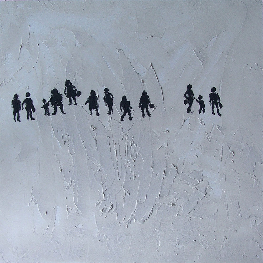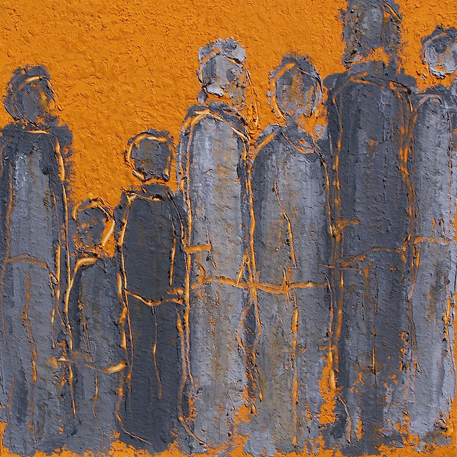 Wartender Acryl u. Quarzsand auf Keilrahmen, 50 x 50, Privatbesitz