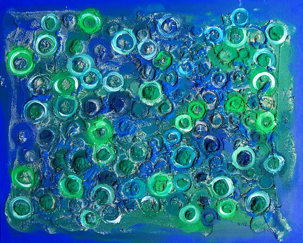 Bubblemaker Acryl u. Sand auf Keilrahmen, 100 x 80