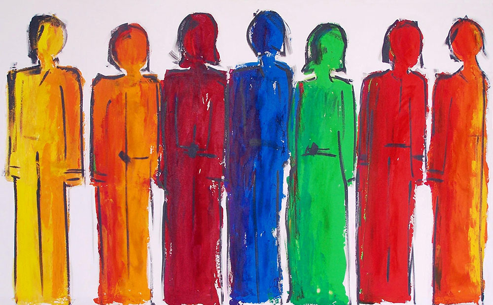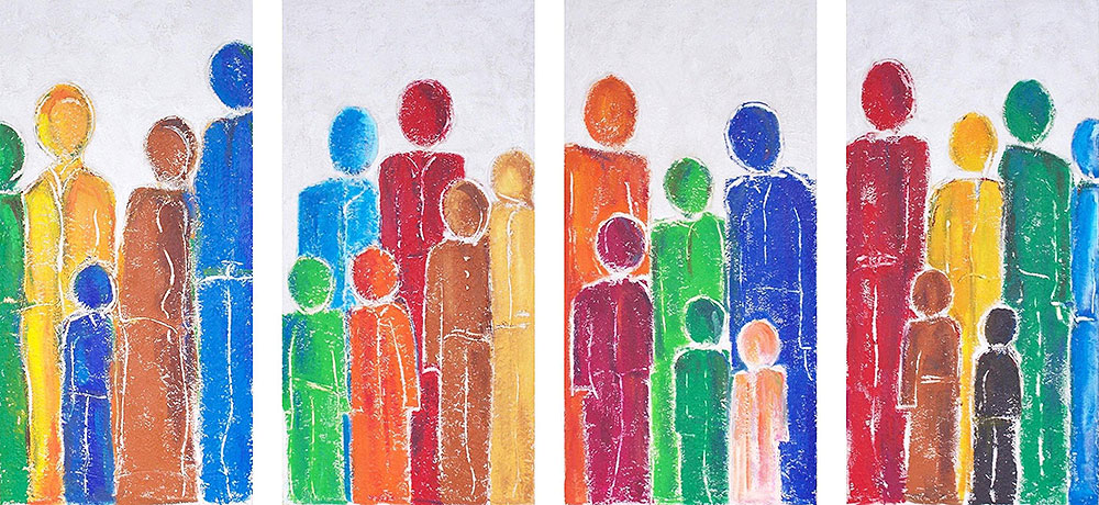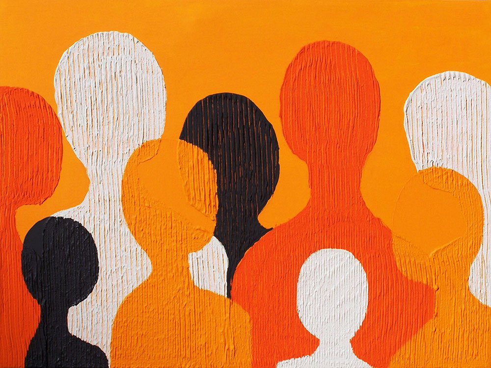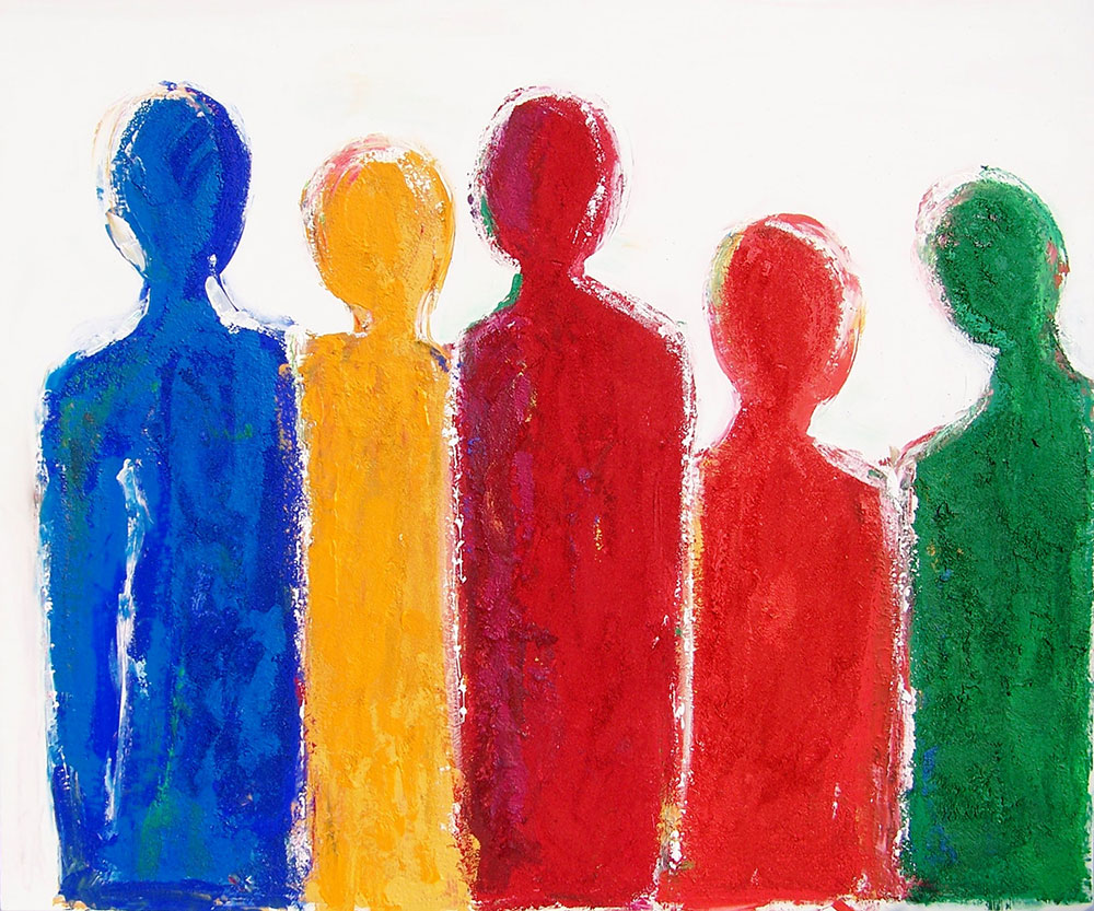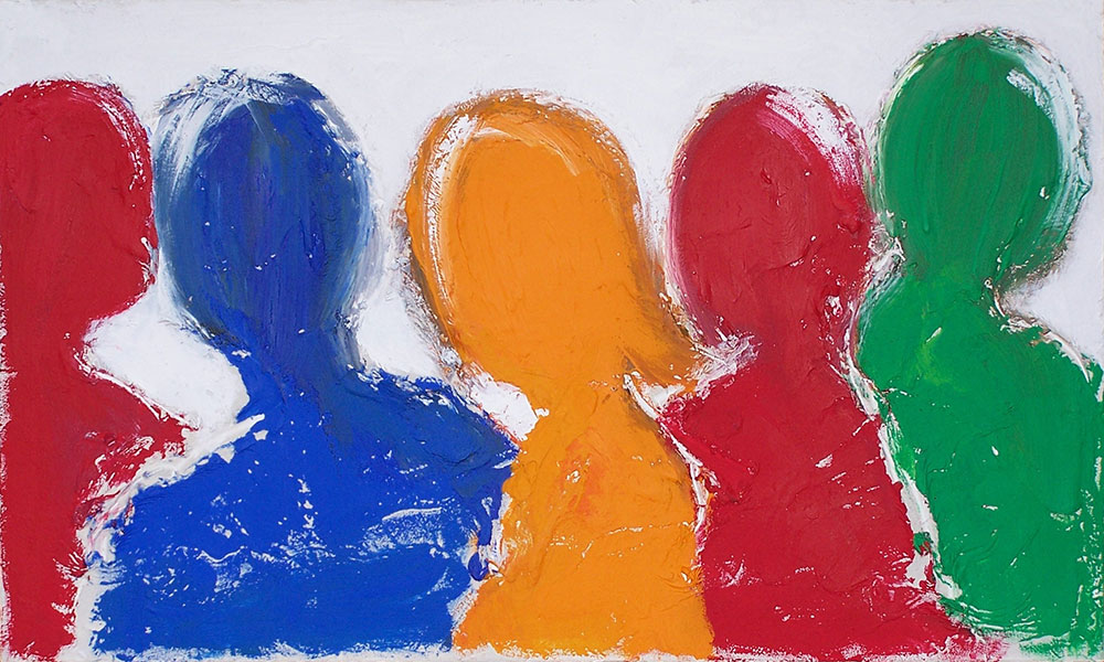 Kluge Köpfe Acryl u. Quarzsand auf Keilrahmen, 100 x 60, Auftragsarbeit
