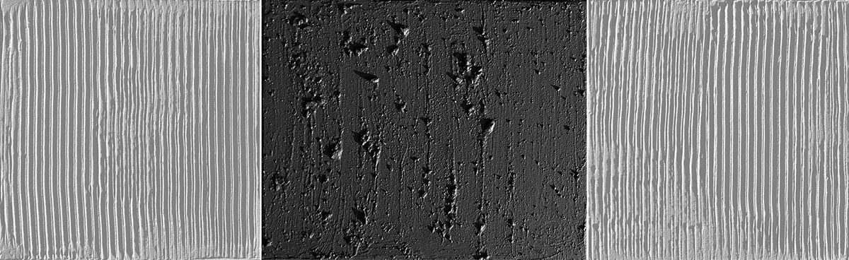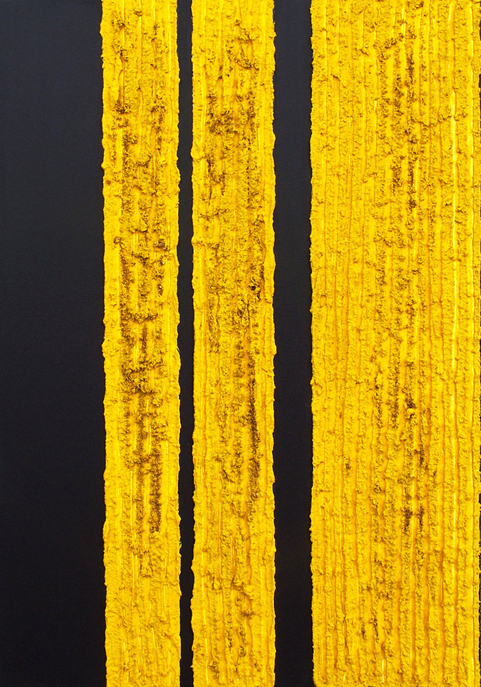 Luna Acryl u. Stein / Quarzsand auf Keilrahmen, Triptychon 130 x 40, Privatbesitz
